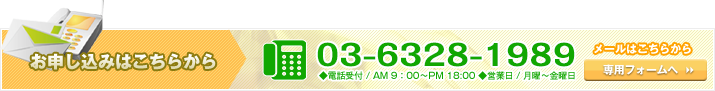 | お申し込み方法 | お電話(平日9:00~18:00)又はWEBサイト上よりお申し込み(24時間) |